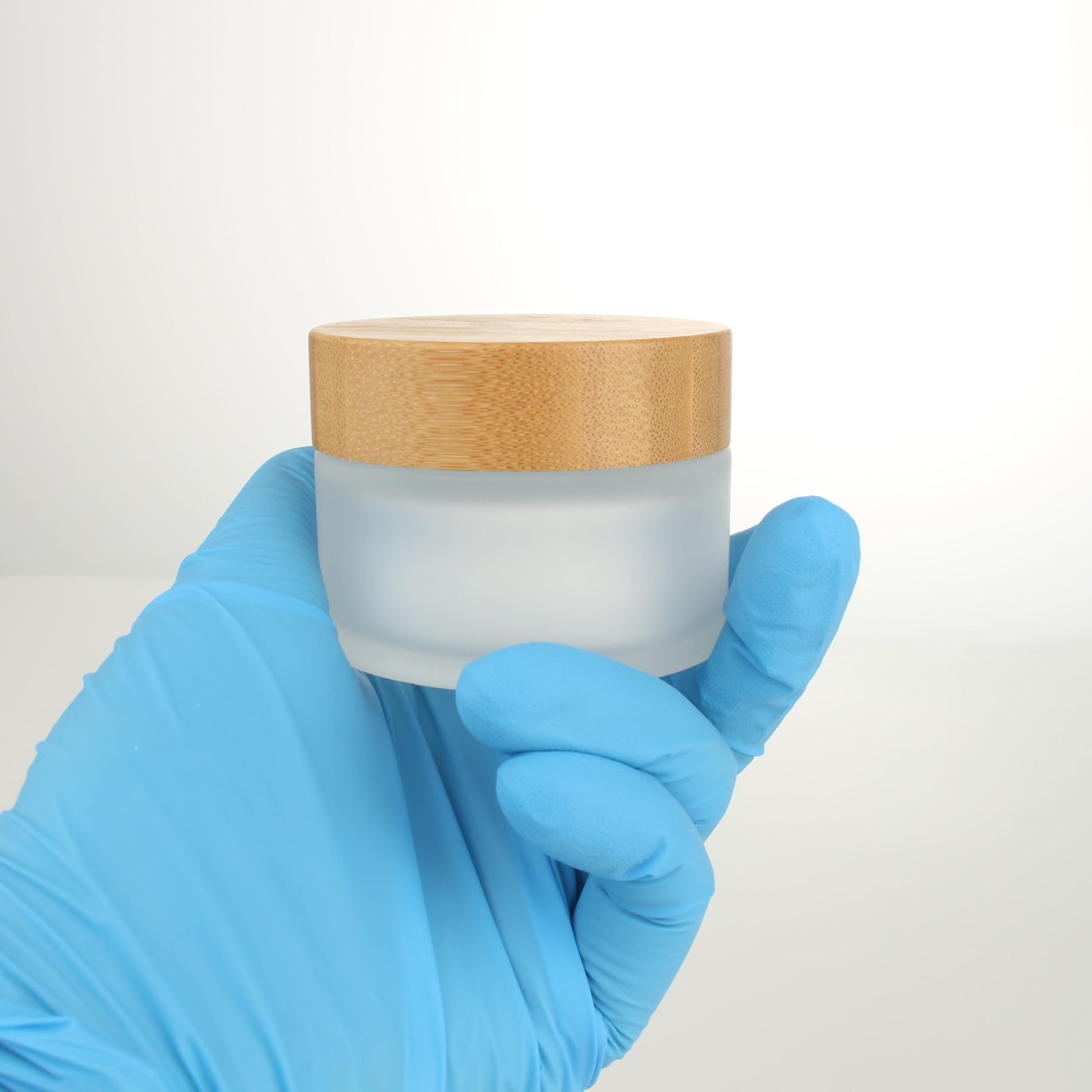 COSIDEA 6pcs Empty 1.7 OZ/50g Round Frosted Glass Jars with Bamboo lids, Bamboo Cream Jar Refillable Cosmetic Travel Containers for Lip Balm, Ointments, Lotion Packing