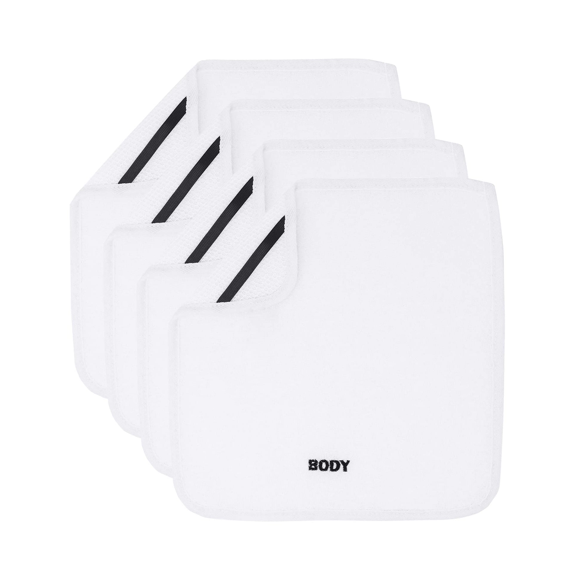 Crafty Cloth 4-Pack Spa Body Cloths | Dual-Sided for Luxurious Soft Lather or Deep Exfoliating Rigid Scrub | Embroidered for Personalized Skin Care (White, Embroidered 4-Piece Set)