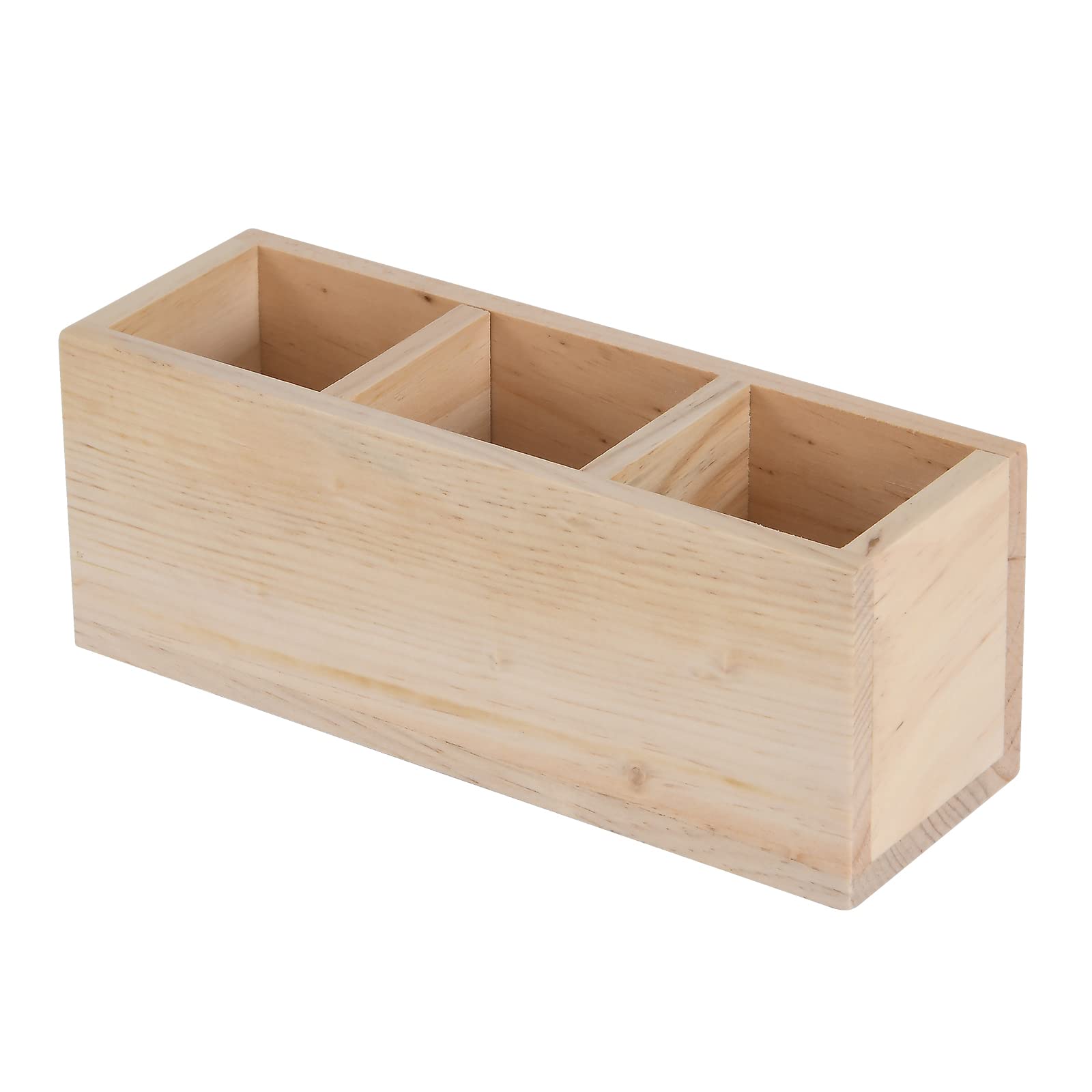 dedoot Wooden Pencil Holder Remote Holder, Unfinished 3 Compartment Wood Desk Organizers Drawer 3 Section, Rustic Remote Control Holder for Desk,School, Home and Office Supplies, 9x3x3.4 Inches