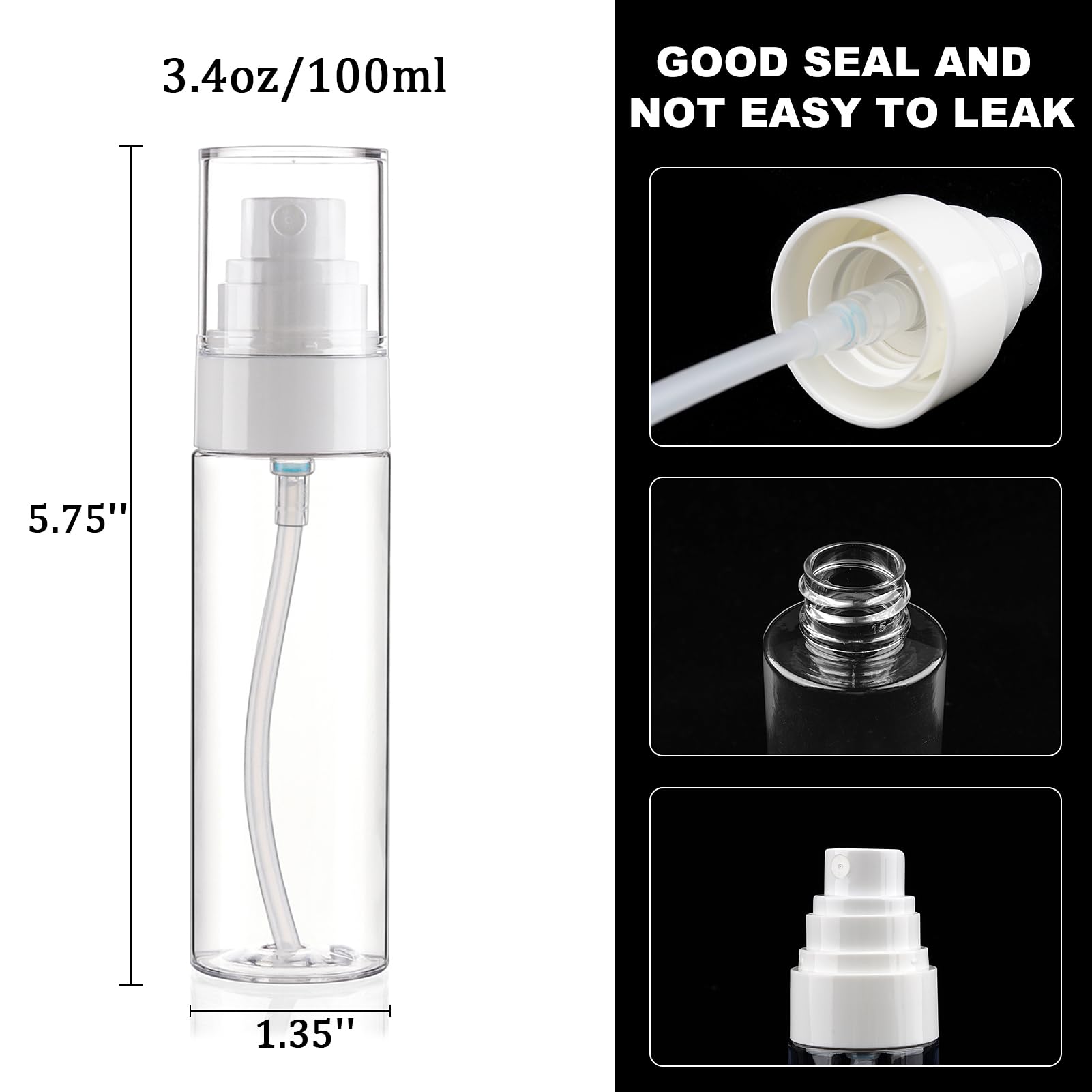 - HIGH-QUALITY MATERIAL: Our 4pcs 3.4oz/100ml fine mist spray bottles are made of high-quality materials, ensuring durability and longevity. The bottles are made from sturdy plastic that is resistant to breakage, and the spray heads are made from fine mist technology for a consistent and even spray.If you have any questions, pls let us know, we will do our best to meet your satisfaction.
