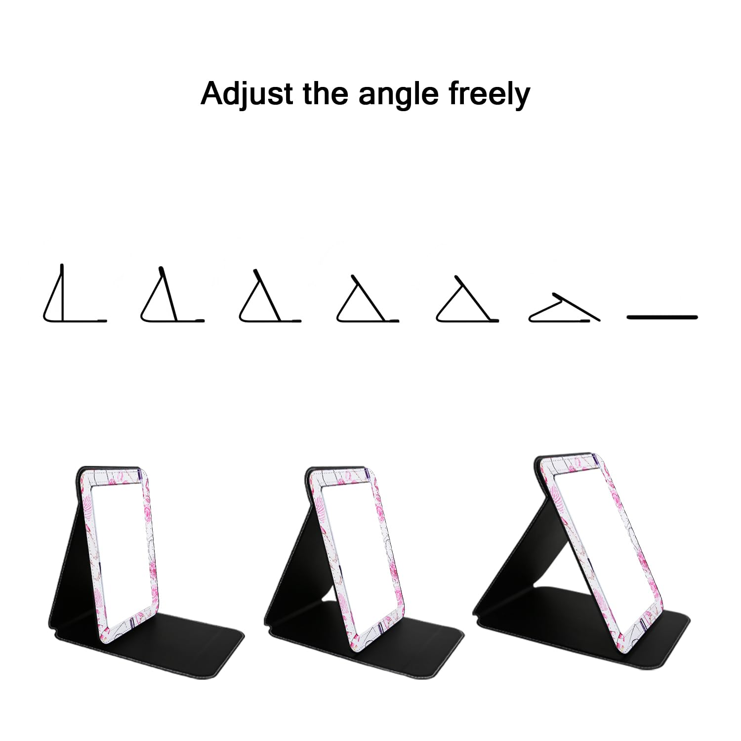 - Adjustable Stand: Our folding travel mirror with an adjustable stand allows you to set the mirror down and adjust to a suitable situation, leaving you to see clearly your facial features from different perfect angles and make a perfect makeup with each detail taken care of. This flat mirror for the table is a versatile addition to your beauty routine, providing convenience wherever you go.