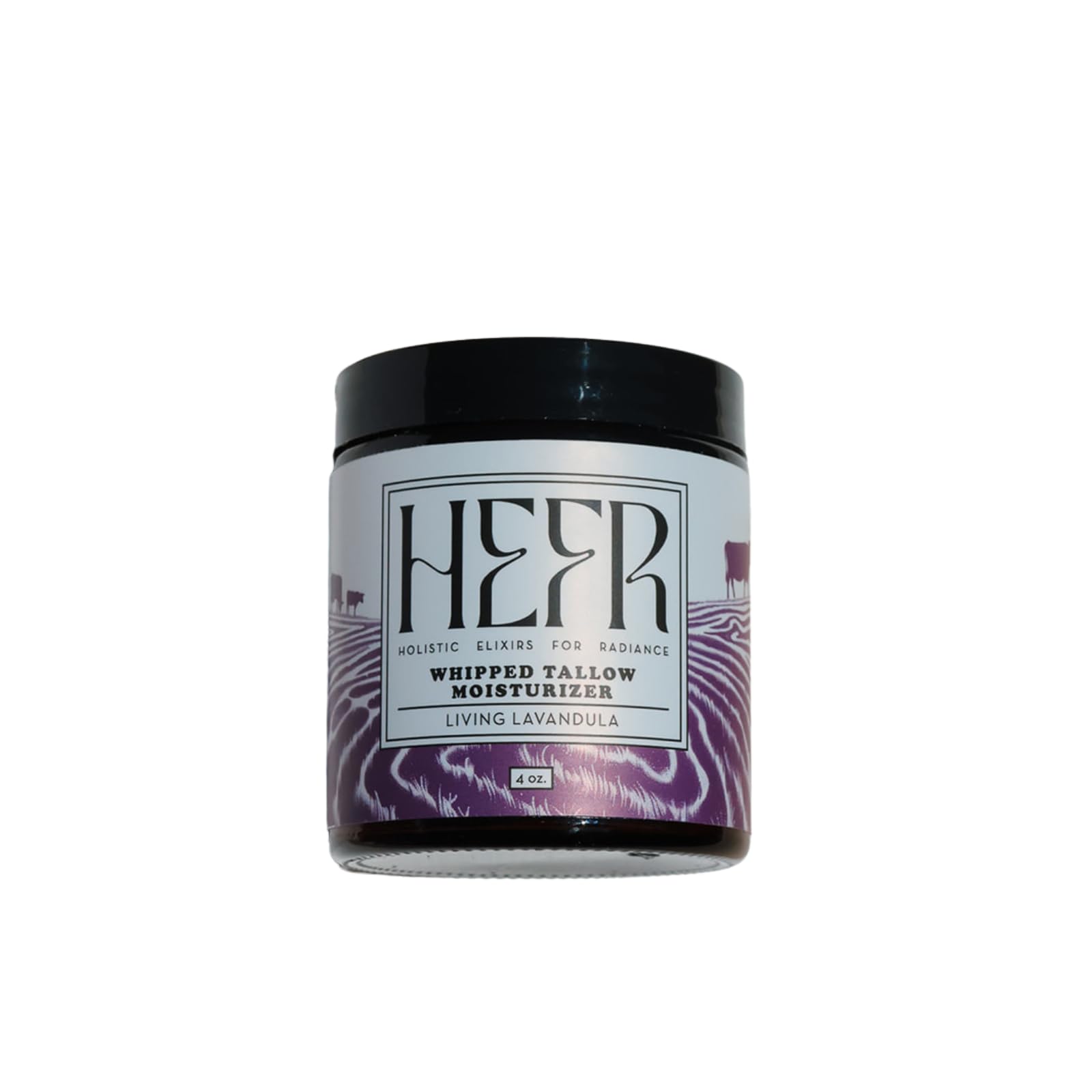 HEFR 100% Grass Fed Beef Tallow for Skin Care, All-Natural Face and Body Whipped Beef Tallow Moisturizer, Organic Beef Tallow Moisturizer for Skin, Face and Body Lotion - (Living Lavandula) 4 oz