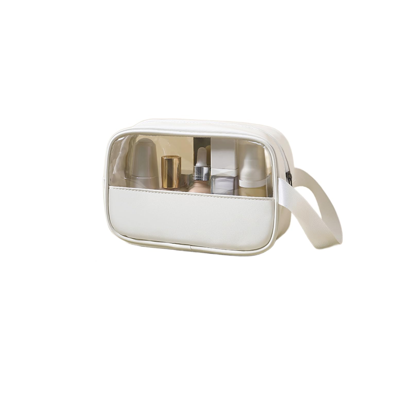 HUTUYIYI Clear Makeup Bag, Portable Travel Toiletry Cosmetic Bag Case for Women, TSA Approved Transparent PVC Waterproof Clear Pouch for Travel Essentials for Women - White