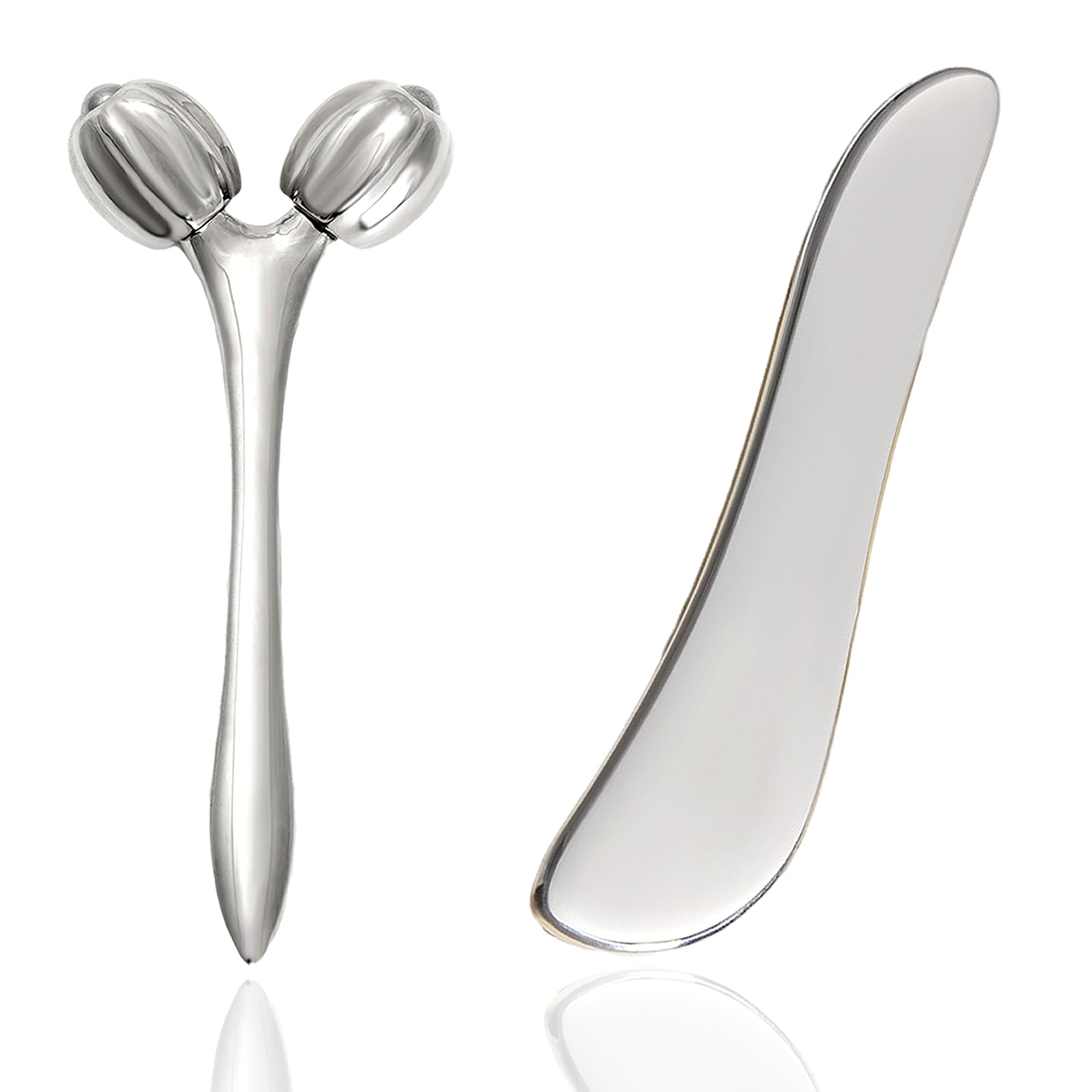 Hysotok Face & Body Massager - Stainless Steel Guasha Set for Wrinkle Reduction, Chin Lift & Skin Tightening (Silver)