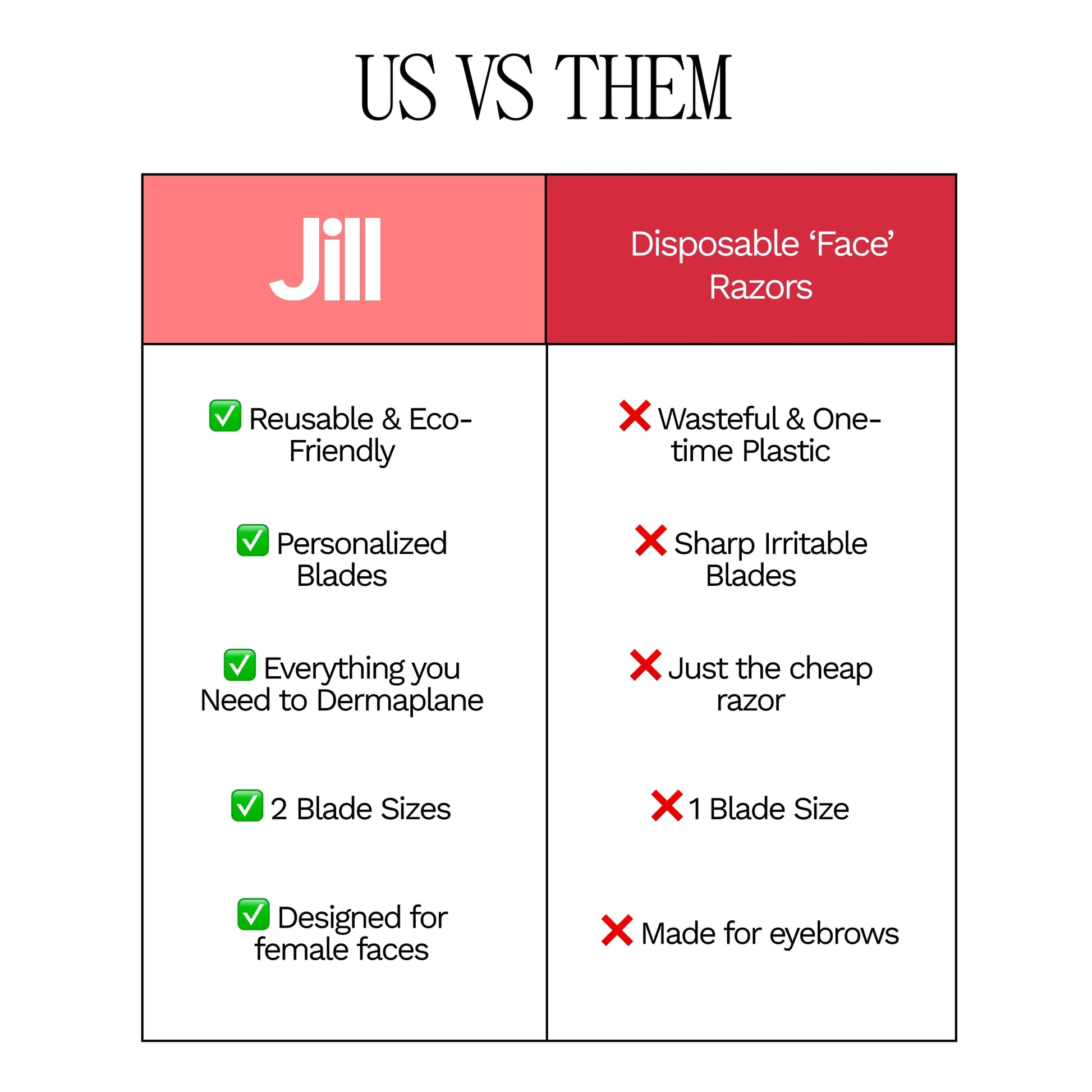 - SAFE & BEGINNER-FRIENDLY – Designed for first-time users, Jill’s women’s facial razor and exfoliating blades make dermaplaning simple and safe at home.
