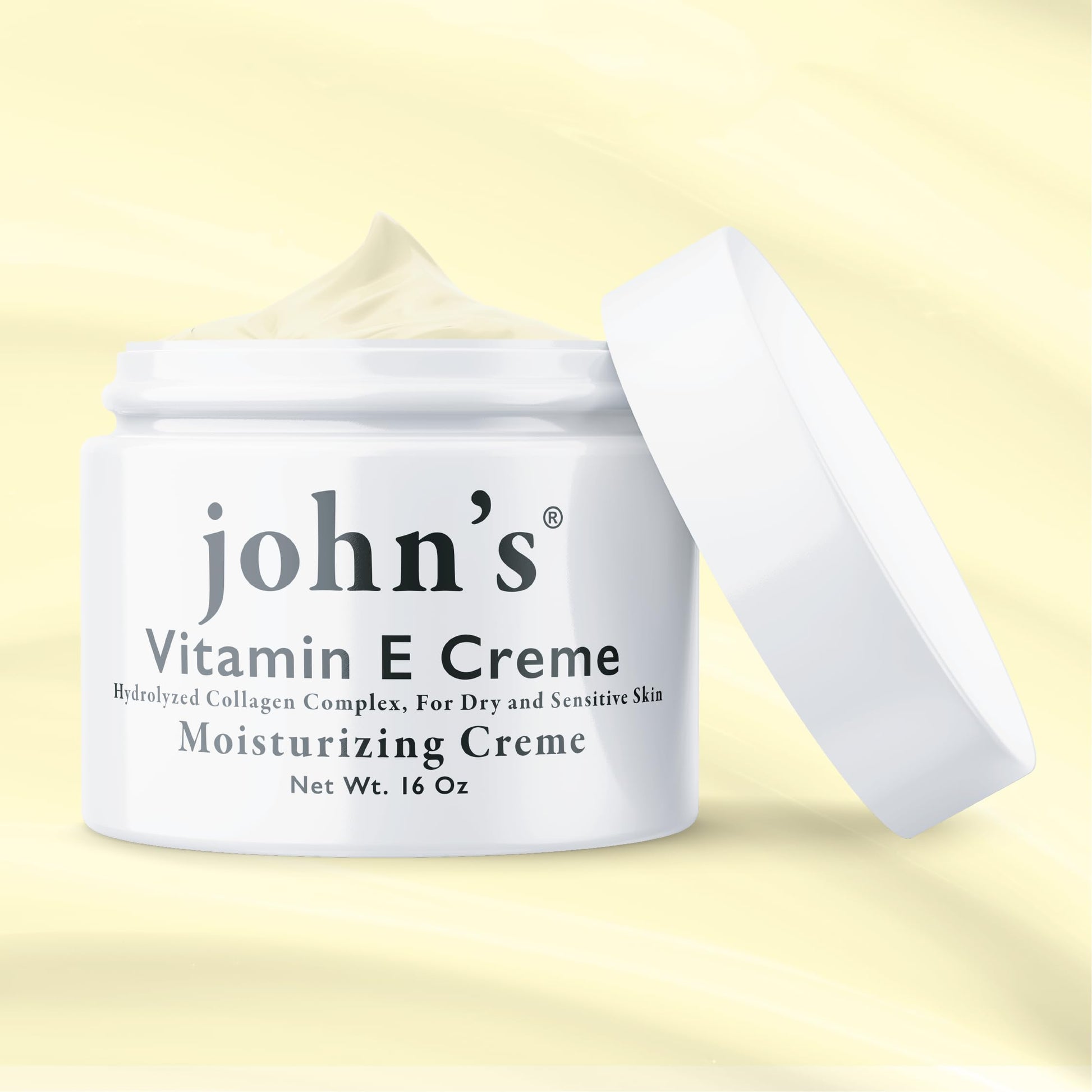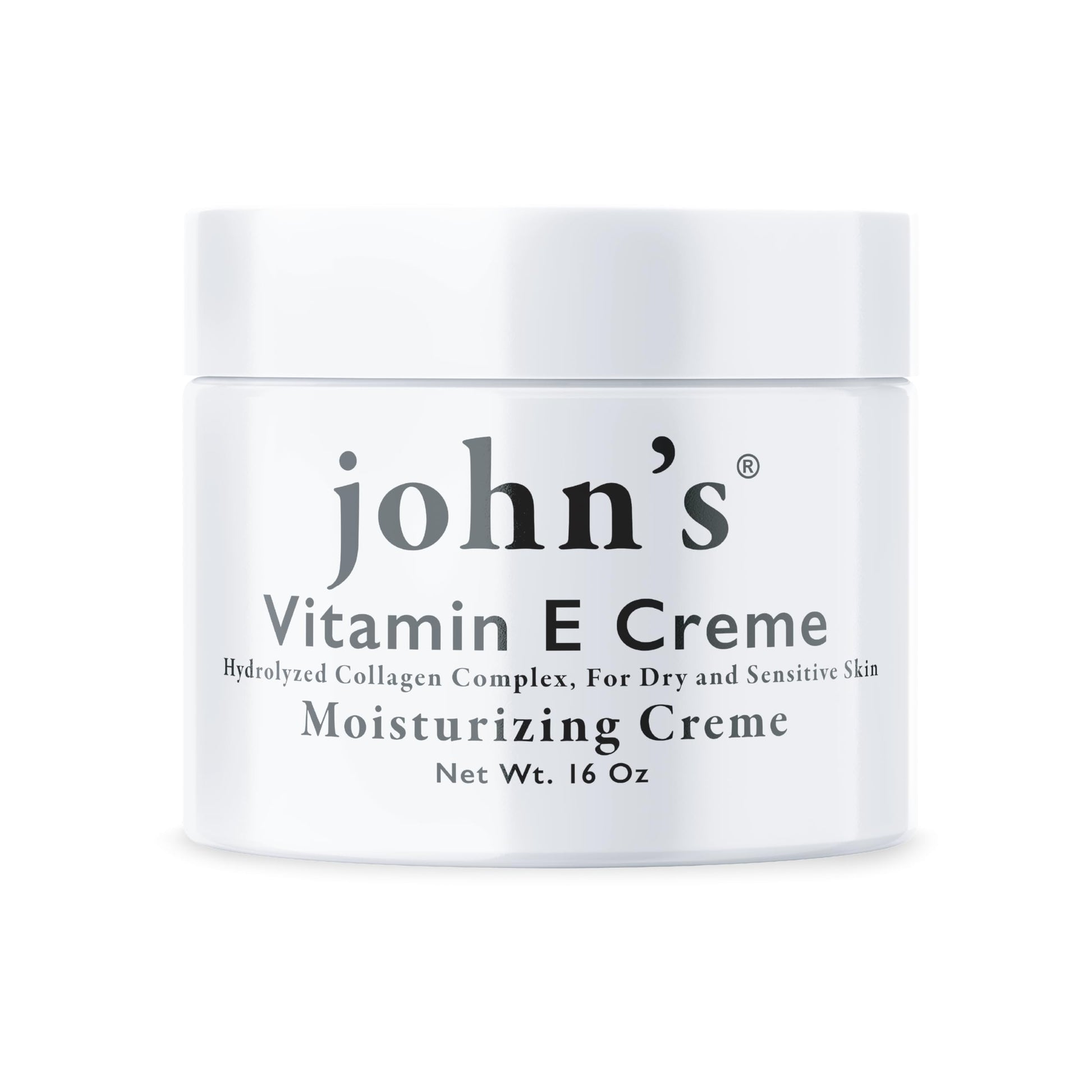 John's Vitamin E, A & D Moisturizer – 16 oz Skin Cream with Hydrolyzed Collagen & Aloe for Dry, Sensitive Skin – Vitamin Cream for Face & Body – Paraben-Free Vitamin E Creme