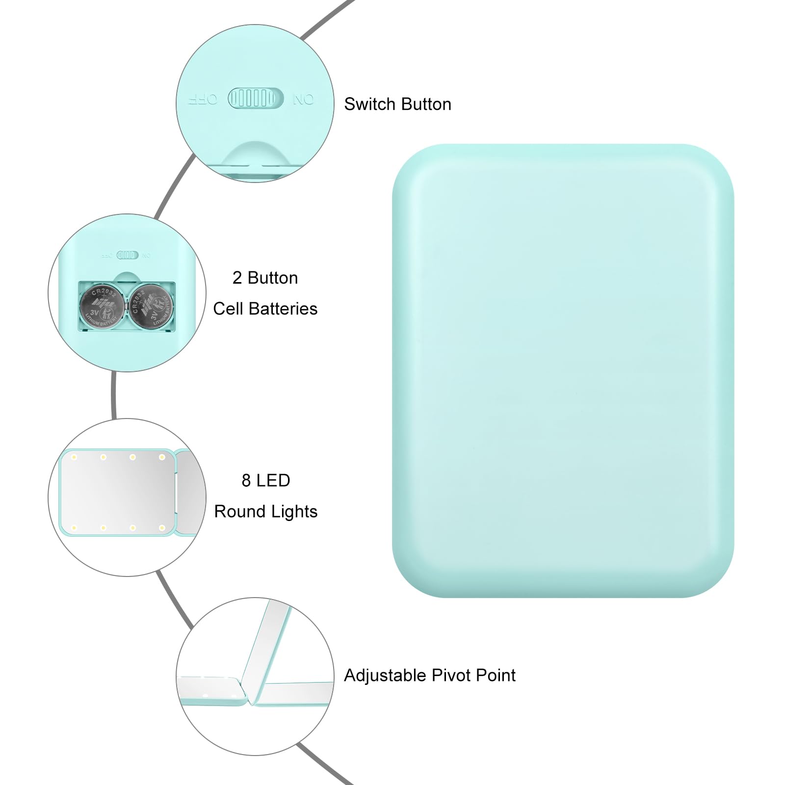 - [Stay Beautiful All the Time] - Our compact mirror is lightweight and compact, easy to carry, with a small built-in battery, which can help you save the time of charging, so that you can watch your facial makeup meticulously all the time. It's the perfect companion for you on the go. Whether you're in between makeup sessions or out and about, it can create a flawless look for you, so you can feel confident and beautiful on any occasion.