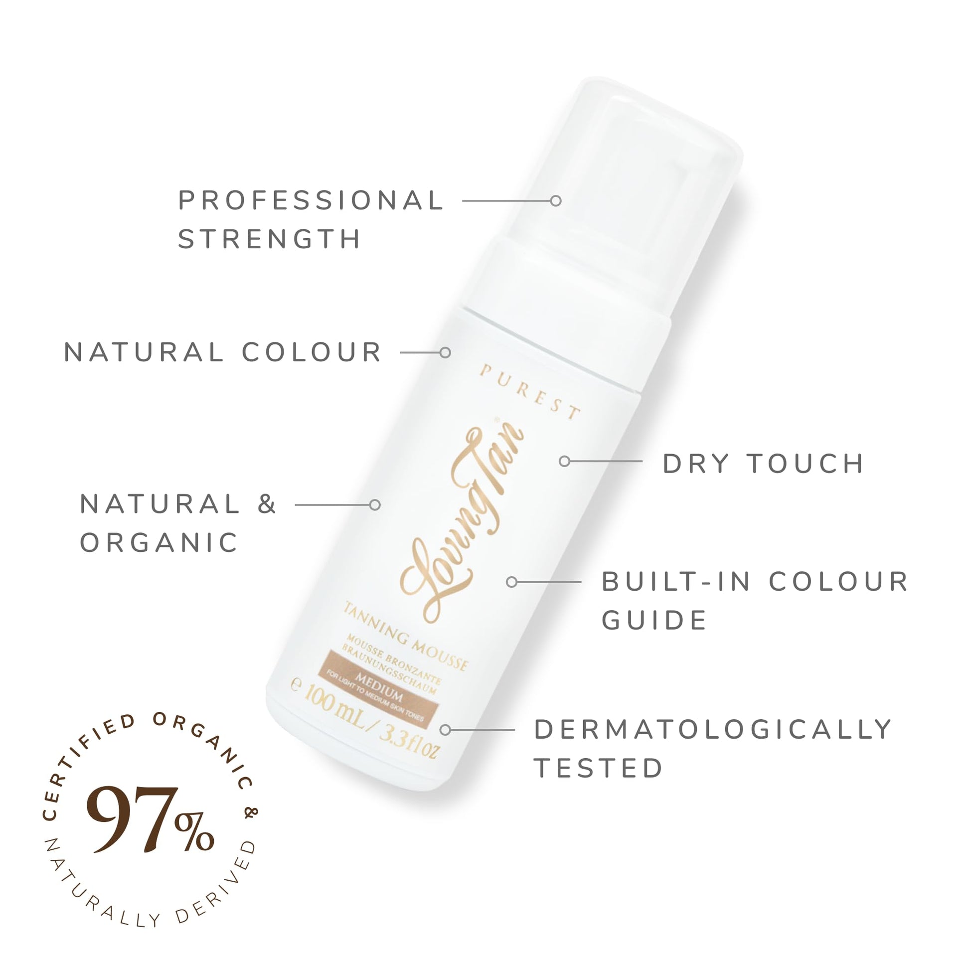 - Made for Tan Lovers by Tan Lovers – The Loving Tan Purest Tanning Mousse gives you an effortless looking natural tan within minutes. Both quick drying & delicately fragrant our formula nourishes and hydrates your skin while your self tan continues to develop. Results powered by the purest ingredients.