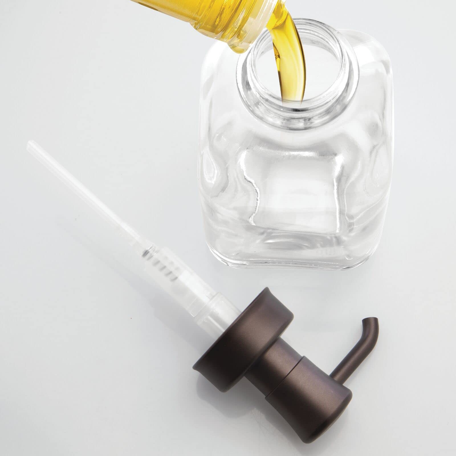 mDesign Square Glass Refillable Liquid Soap Dispenser Pump Bottle for Bathroom Vanity Countertop, Kitchen Sink - Holds Hand Soap, Dish Soap, Hand Sanitizer, Essential Oils - 2 Pack - Clear/Bronze