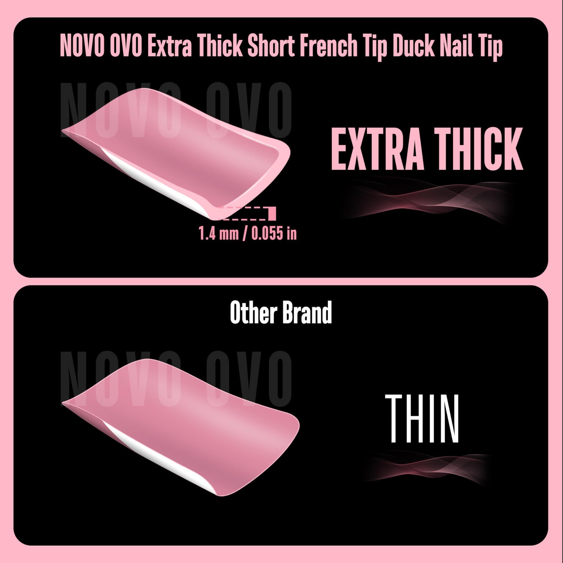 - GET A SIMPLE FRENCH TIP DUCK NAIL PEDICURE WITH JUST 3 STEPS: NOVO OVO pre-designed nails are here to make your manicure easier! We've already applied a tip primer and base coat on the soft gel nail tips. Simply stick them on your nails with UV gel or glue, then add a layer of builder gel and top coat. In just 15 minutes, you'll have stunning French Tips duck nails on your hand!