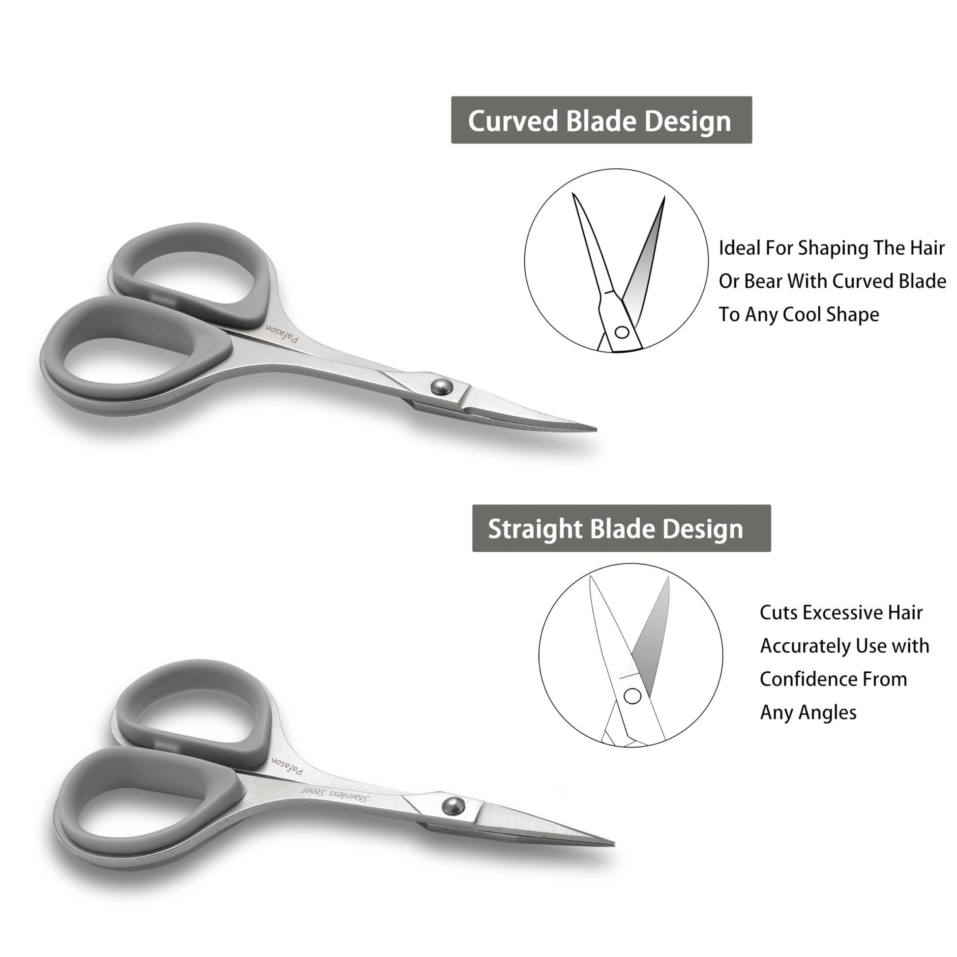 PAFASON High Precision Manicure Scissor Set, 2 PC Multi-Purpose Curved and Straight Cuticle Beauty Grooming Tool for Eyelash, Eyebrow Nail Dry Skin,Stainless Steel, Safety Cases