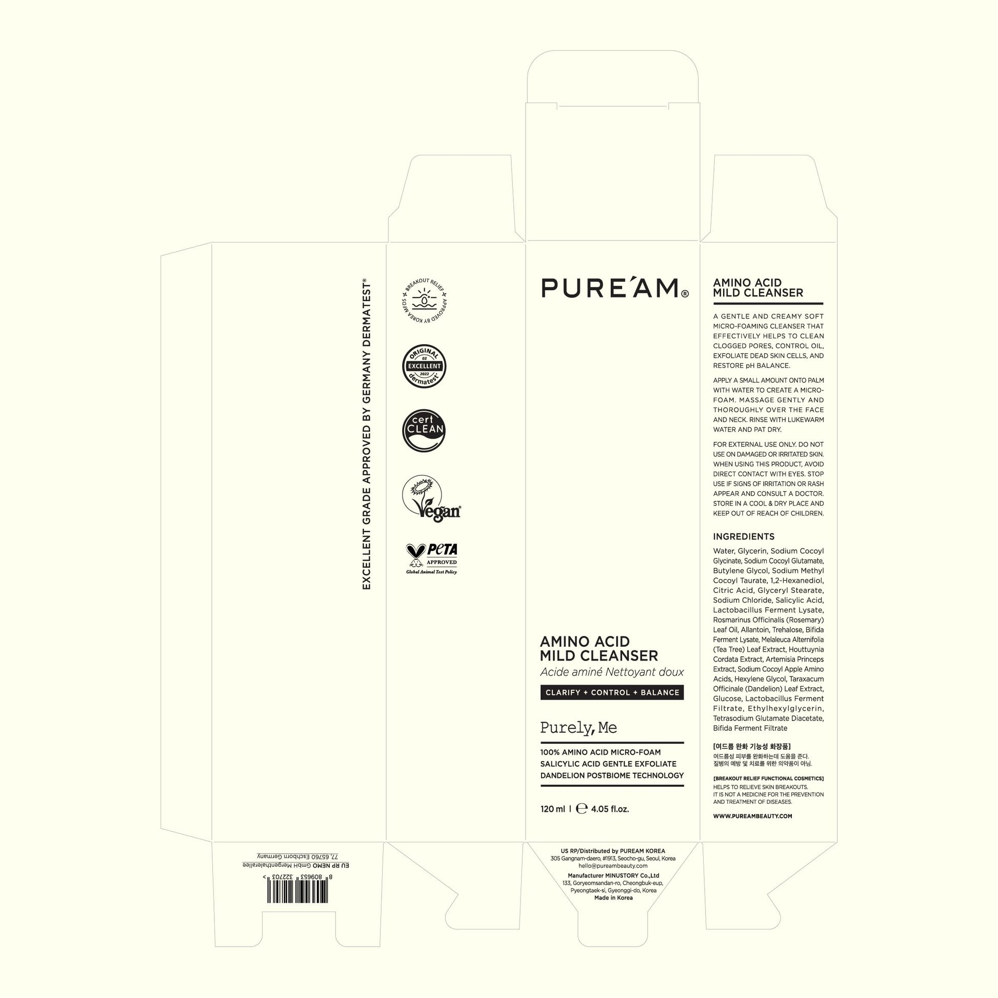 PURE'AM - Gentle Face Wash with Amino Acids, Salicylic Acid - 4.05 Fl.oz, 120ml - Korean Face Cleanser - Clarifying, Foaming, Deep Pore Cleaning, pH Balancing, Oil Control - Authentic Korean Skin Care