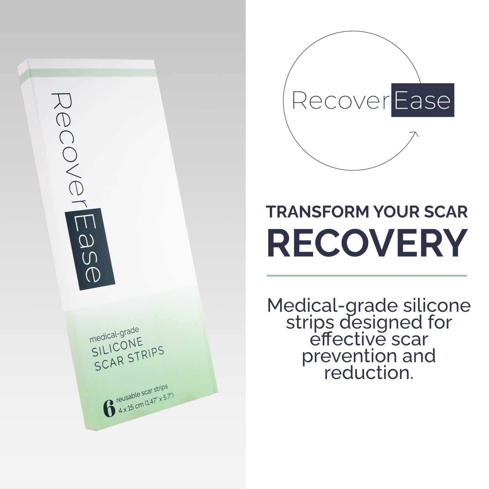 RecoverEase Silicone Scar Strips – Reusable Medical Grade Silicone & Individually Wrapped Scar Sheets for Mastectomy & C-Section, Scar Treatment Tape for Tummy Tuck, Keloid, Surgical, Burns - 12 Pack