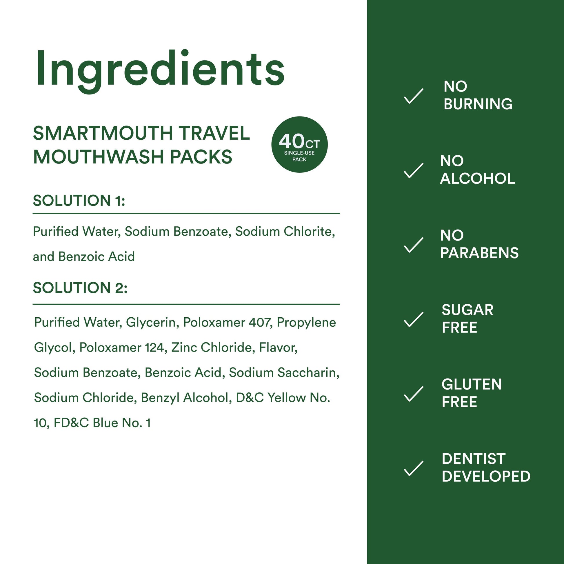 SmartMouth Original Activated Mouthwash Single Packs, Travel Mouthwash, Fresh Mint, 40 Pack