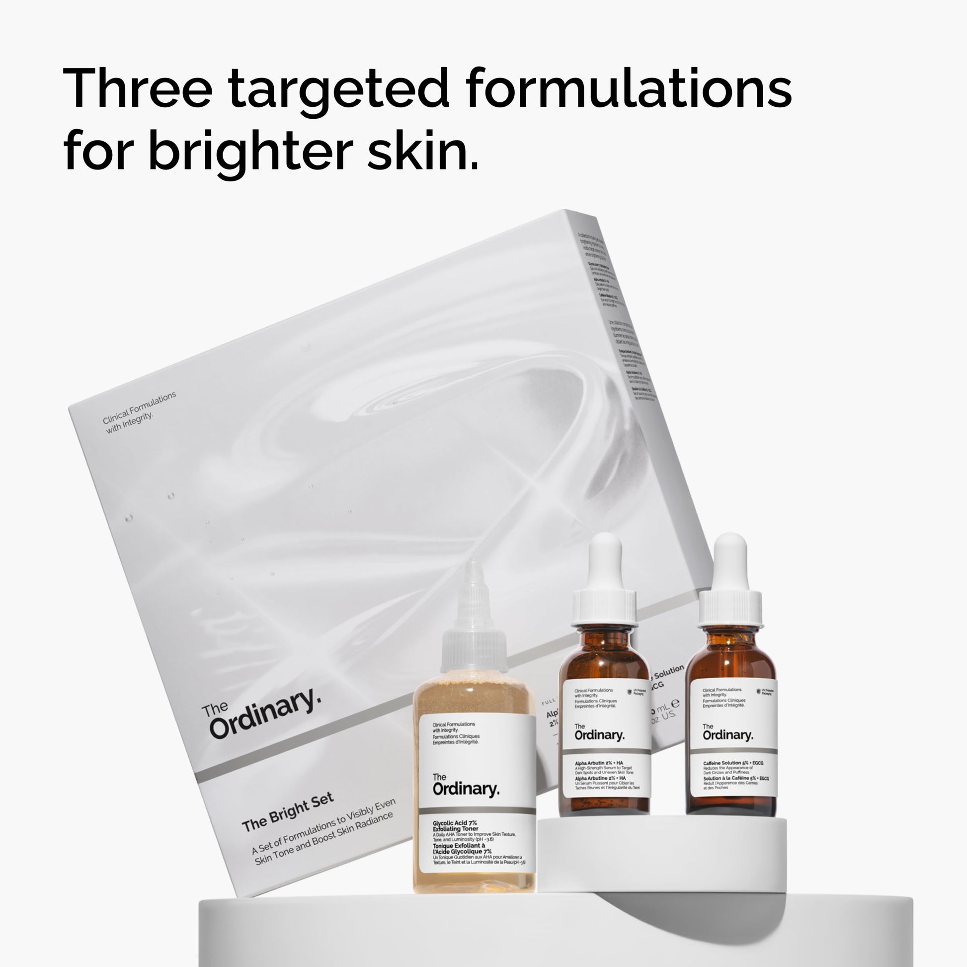 The Ordinary The Bright Set, 3-Step Regimen for Radiant, Even Skin Tone with Glycolic Acid 7% Exfoliating Toner, Alpha Arbutin 2% + HA, and Caffeine Solution 5% + EGCG | Skin Care Set