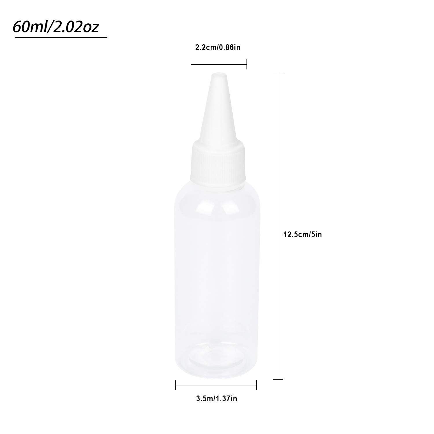 Trendbox 2oz Clear Plastic Bottles Applicator with Twist Top Cap BPA-Free for Hair Oils and Liquids 48 Pack with 48pcs Labels