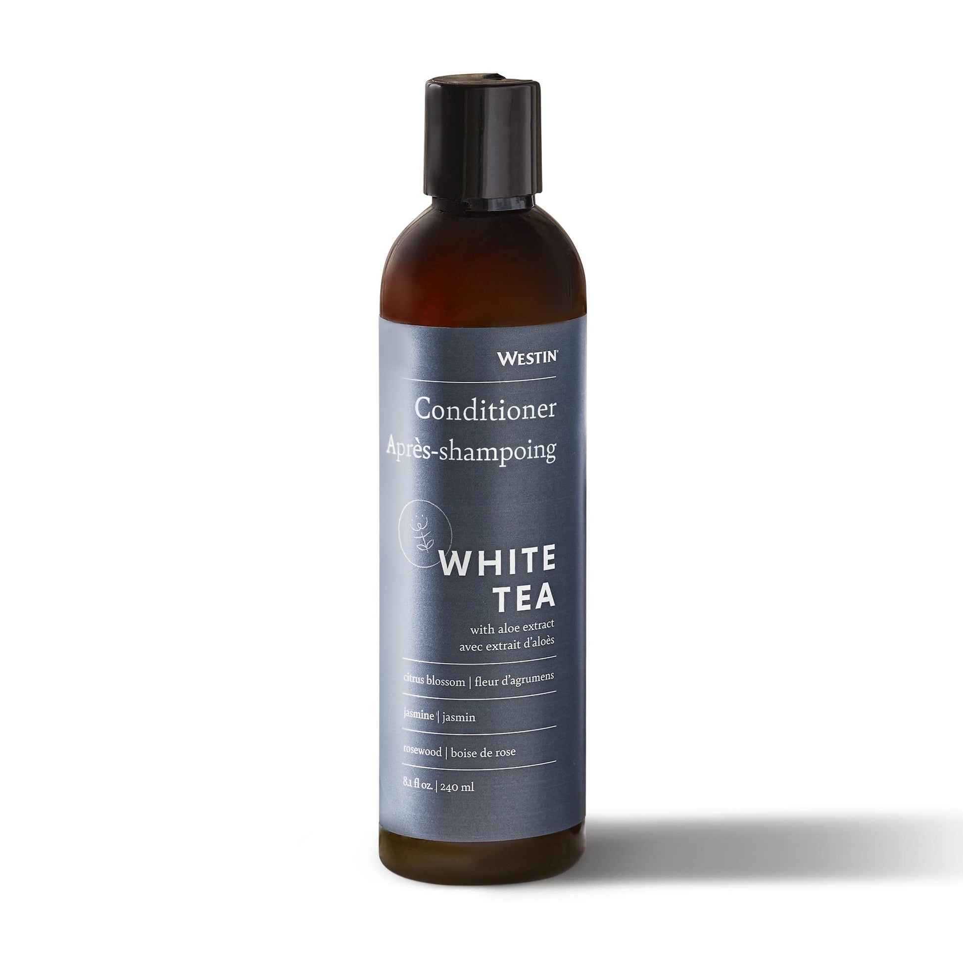 - INCLUDES - One 8-ounce bottle of White Tea Aloe Shampoo and one 8-ounce bottle of White Tea Aloe Conditioner. Westin White Tea Aloe products are made without parabens, PABA’s, dyes, and animal testing.