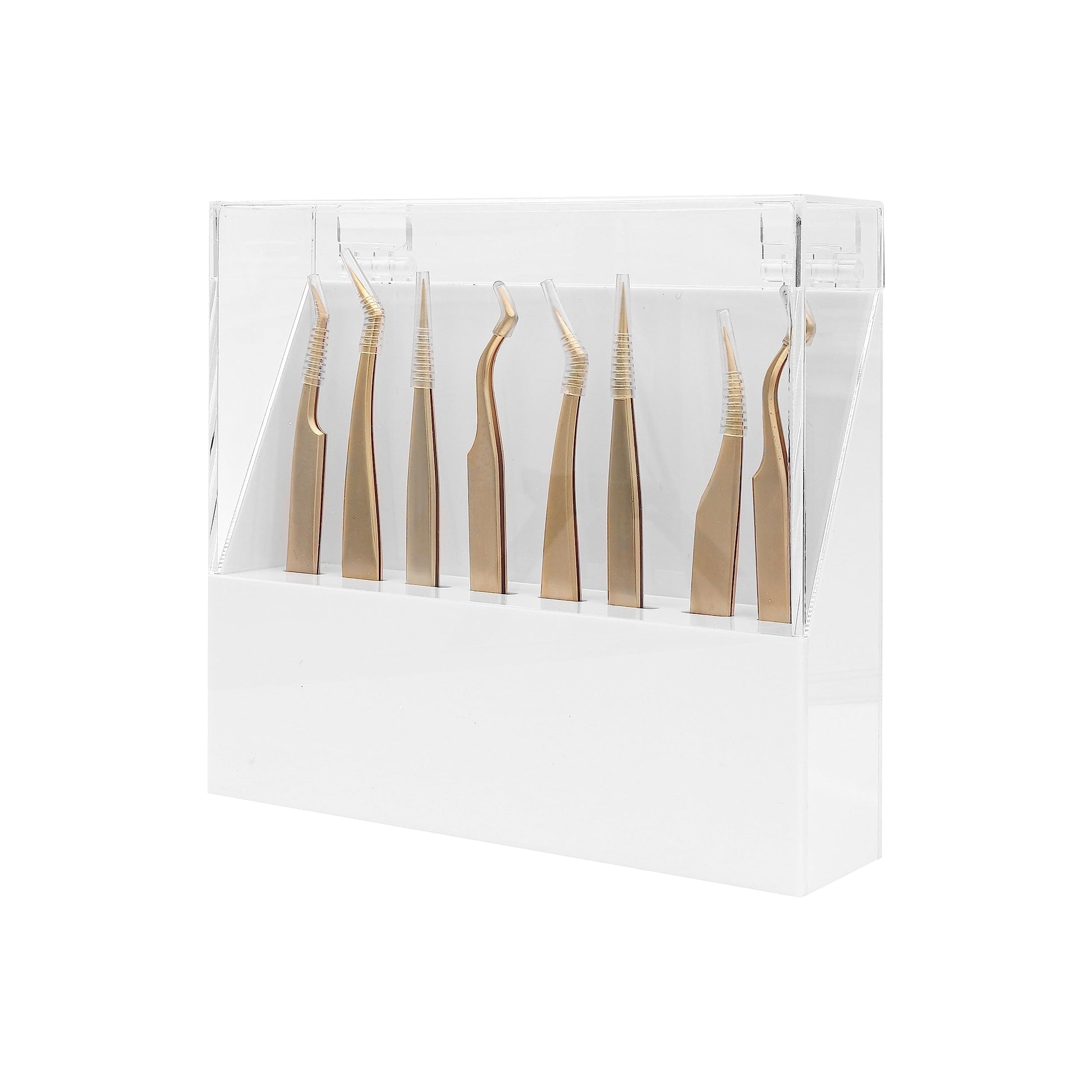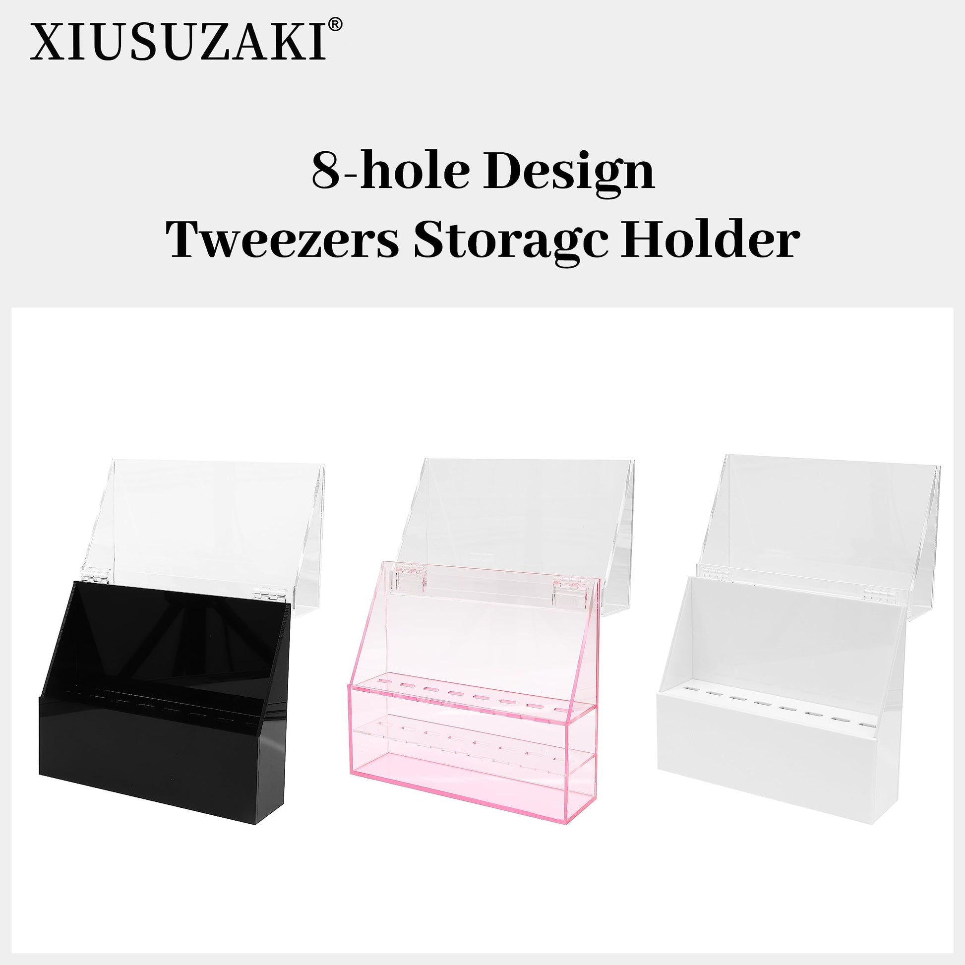XIUSUZAKI Tweezers Storage Box 8 Holes Holder Lash Tweezers Storage for Eyelash Extensions Eyelash Professional(White,Only the Box)