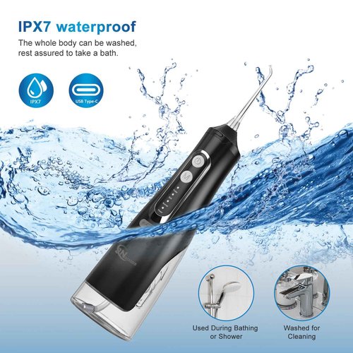 Cordless Water Dental Flosser Oral irrigator,JNGOODS 310ml Rechargeable Water flosser for Teeth IPX7 Waterproof 4 Modes Portable Irrigate with 4 Jet Tips,Travel Home use (Black)