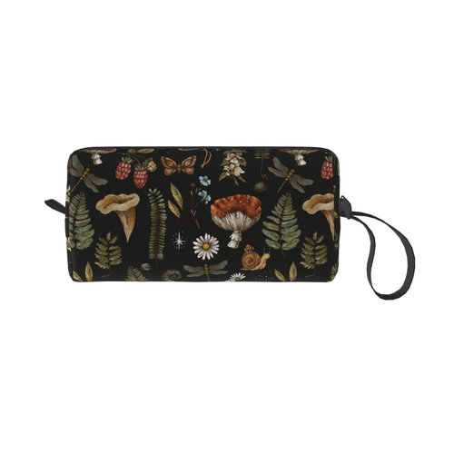 JKJOJIA Vintage Mushroom Witchcraft Witchy Makeup Bag Organizer Small Cosmetic Bags Portable Travel Toiletry Bag With Handle Simple Accessories Storage Zipper Pouch For Women Girl
