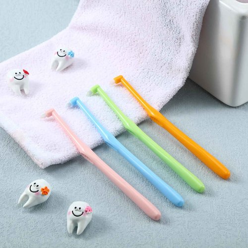 Qinyoung 48 Pcs End Tuft Toothbrush Individually Wrapped Small Head Toothbrush Reusable Orthodontic Brushes for Back Teeth Wisdom Teeth Implants Detail Cleaning, Green Blue Pink and Orange