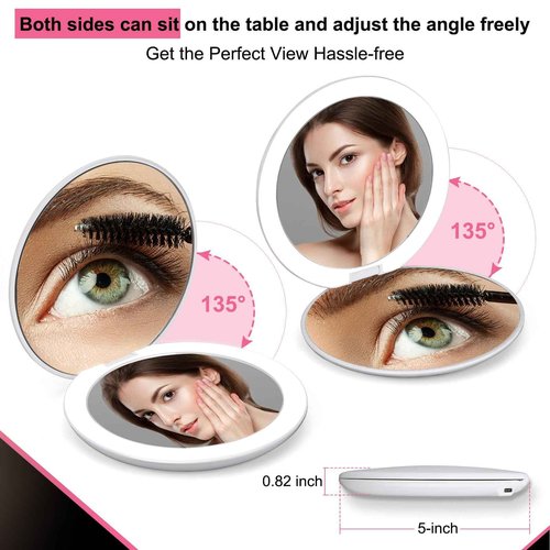 Rechargeable Compact Lighted Travel Makeup Mirror - 5-inch 1x/10x Magnifying Compact Mirror - Touch Screen, 3 Color Lighting & Brightness Stepless Dimmable, w/ Tweezers & Portable Bag, Ideal Gift