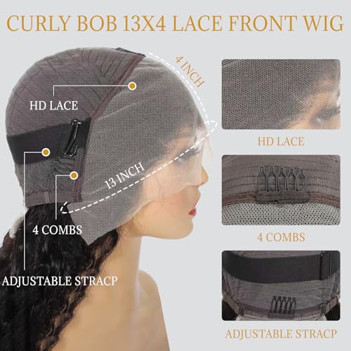 Short Curly Human Hair 180 Density Bob Wig Human Hair 13x4 Lace Front Wigs Human Hair For Black Women 100 Real Curly Human Hair Natural Black 12inch