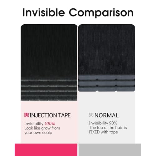Youngsmile Injection Tape in Hair Extensions Real Human Hair, #1 Jet Black 14 Inch Invisible Edge Tape in Injected Hair Extensions, 20pcs 30g, Straight Remy Virgin Human Hair Tape ins (#1,14'')
