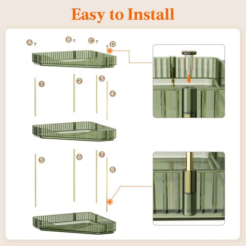 Lifewit 3-Tier Corner Bathroom Counter Organizer, Plastic Makeup Skincare Organizers Storage Countertop, Sink Vanity Trays Perfume, Cosmetic Shelf in Bedroom, Dresser, Kitchen (Green)