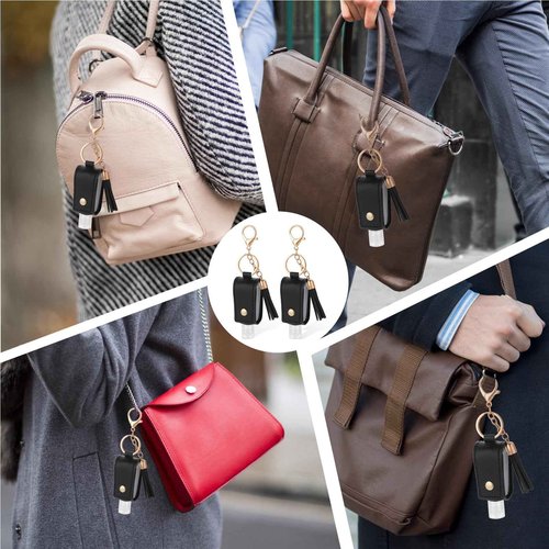 Aiyorse 2 Pcs Portable Handwashing Fluid Holder Bottles with Keychain, Refillable Travel Containers, 1oz/30ml Squeeze Bottles for Toiletry Lotion Liquid Soap Shampoo (Black)
