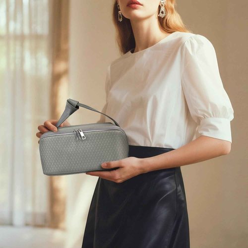 hhhouu Large PU Leather Makeup Bag with Handle, Travel Cosmetic Organizer Case, Waterproof Toiletry Bag, Portable Storage Pouch for Accessories and Brushes, Ideal Gift for Women HO-CB01