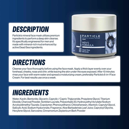 Particle Mineral Face Mask for Men, Hydrating and Deep Cleansing Clay with Charcoal, Aloe Vera, Panthenol & Dead Sea Minerals, Men's Cleanser, Refreshing Weekly Skin Care Routine, 3.38 FL OZ