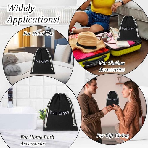 Tyqour Hair Dryer Bag Black Drawstring Hair Dryer Organizer for Travel & Bathroom, 14.96 x 11.81 Inch