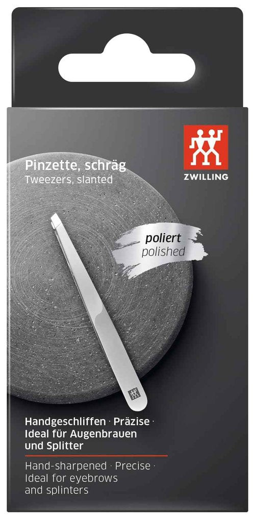 ZWILLING Slant Tweezer (plucking eyebrows, removing splinters, hand-finished, roughened tips), Polished, Silver, 3.5 inch