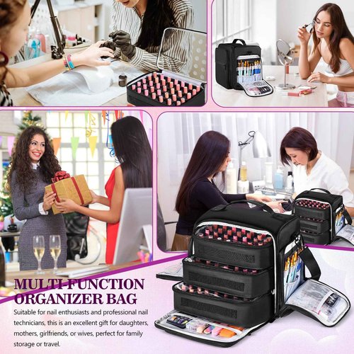 ZWRTU Extra Large Nail Polish Organizer Case Holds 105 Bottles with 3 Removable Pouches for Manicure Tools, Supplies, Nail Lamp, Gift for Girls