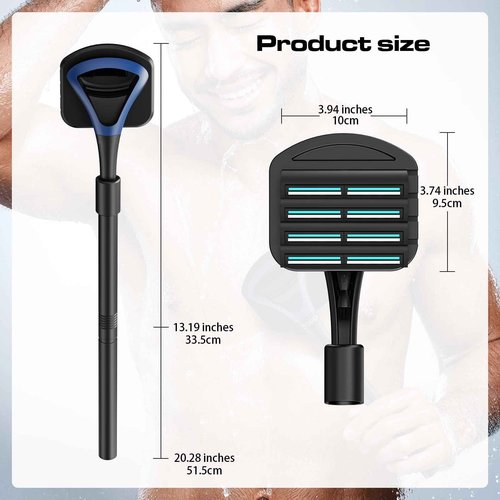 ZOMU Back Shavers for Men:Back Hair Shaver and Body Shavers for Men with Safety Blade Technology & Ergonomic DIY Long Handle, Wet or Dry Shaving-Black(Replaceable 8PCS 3.5inch Blades Included)