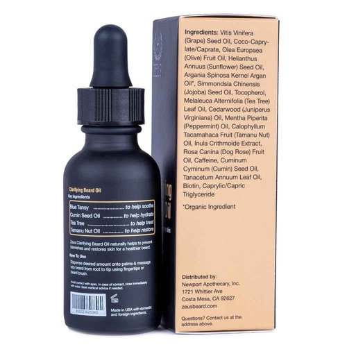 ZEUS Clarifying Beard Oil for Men, Hydrating Facial Hair Oil with Tea Tree for Sensitive Skin, Revitalizes, Treats Blemishes, Promotes Healthy Beard Growth (Made in USA) 1 fl. oz.