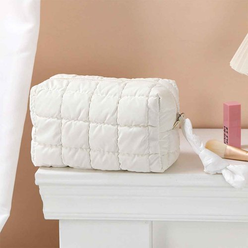 ZEROONEJIUJIU Women Cosmetic Bag Travel Puffy Makeup Bag Toiletry Pouch Puffer Make up Organizer Bag (White)