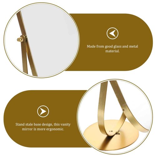 Zerodeko Light Luxury Dressing Table Metal Mirror Vintage Portable Makeup Mirror Small Desk Single Sided Vintage Vanity Desk one-Way Cosmetic Tabletop Metal
