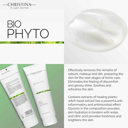 -CHRISTINA- Biophyto Mild Facial Cleanser with Green Tea and Cucumber Extracts - 250 ml - Soapless Gentle Face Wash and Daily Facial Cleanser for All Skin Types