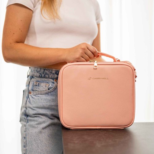 (Not Made In China) Makeup Bag Travel Case, Train Case for Cosmetics, Portable Beauty Organizer, Cosmetic Storage Bag With Adjustable Dividers For Make Up and Brushes