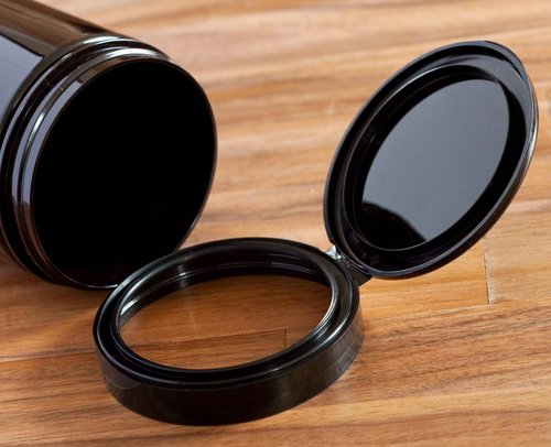 (6 Pack) 8 oz Amber Plastic Low Profile Jar with Wide Mouth Black Flip Top