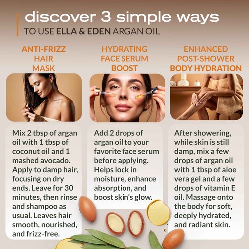 Ella & Eden Organic Castor Oil 16 Oz & Moroccan Argan Oil 4 Oz | Glass Bottle | Hair, Skin, Face, Nails | Cold-Pressed, Unrefined, Hexane-Free, USDA Certified, 100% Pure