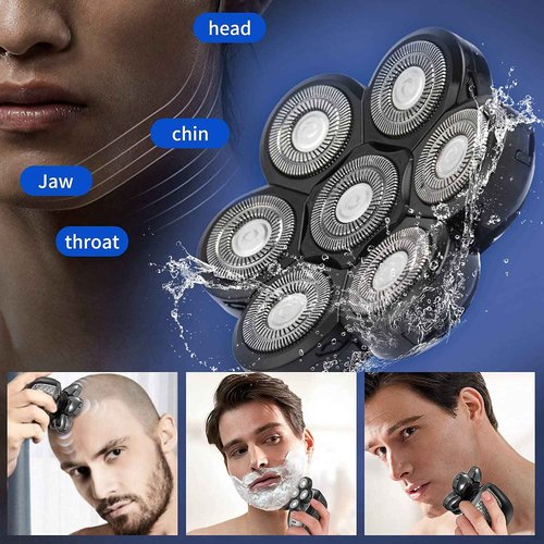 Roziapro Upgrade 7D Freedom Head Shaver Replacement Blades Electric Shaver Replacement Head Shavers for Bald Men Replaceable Head Waterproof Blades for Men 5 in 1 Bald Head Replacement Blades (Gray)