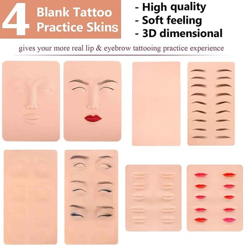 Microblading Supplies, Beauty Star Microblading Kit, Microblading Practice Skin with Microblading Pen, Eyebrow Tattoo Kit with Pigment Ink, Mannequin Head Set for Microblading and Makeup Practice