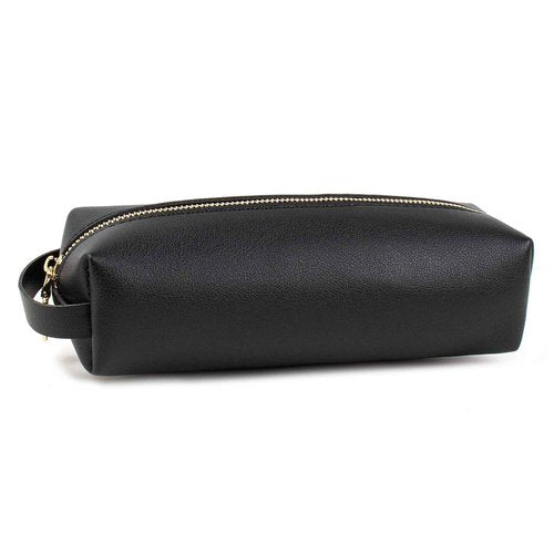 FFpaw Travel Makeup Bag, Slim Makeup Brush Bag Small Makeup Bag for Purse Leather Brush Holder Bag Portable Cosmetic Case Travel Toiletry Bag with Zipper Car Essentials for Women Girls
