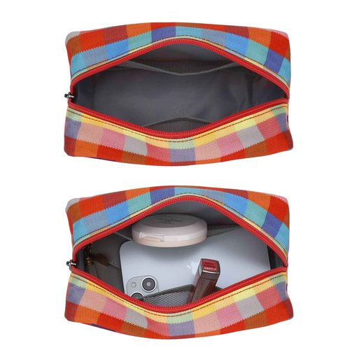 E-Tree Cute Makeup Bag,Travel Make up Pouch for Purse,Zipper Toiletry Cosmetic Brush Skin Care Case for Women Man,Tech Electronic Organizer,Small Canvas Storage for Personal Items,Colorful Checkered