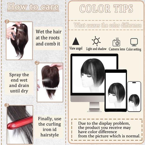 HVVZOY Hair Toppers for Women Real Human Hair, 3D Cover Clip in Bangs Realistic Scalp Line Human Hair Toppers for Women with Thinning Upgrade Basement with Bangs (1B, 3D Wispy Bangs 5x9)