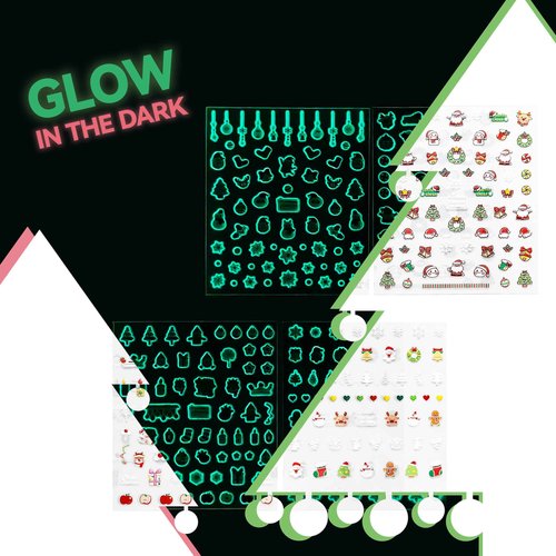 4 Sheets of 3D Christmas Nail Stickers - 258 Cute Nail Decals - Embossed Kawaii Nail Stickers for Kids | Cute Holiday Theme - Santa, Reindeer, Snowman, Gifts, Candy Cane | Glow in The Dark