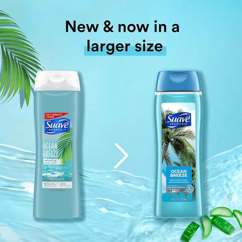 Suave Body Wash Bundle - Cocoa Butter & Shea and Ocean Breeze Scents, 18 Oz Packs of 6